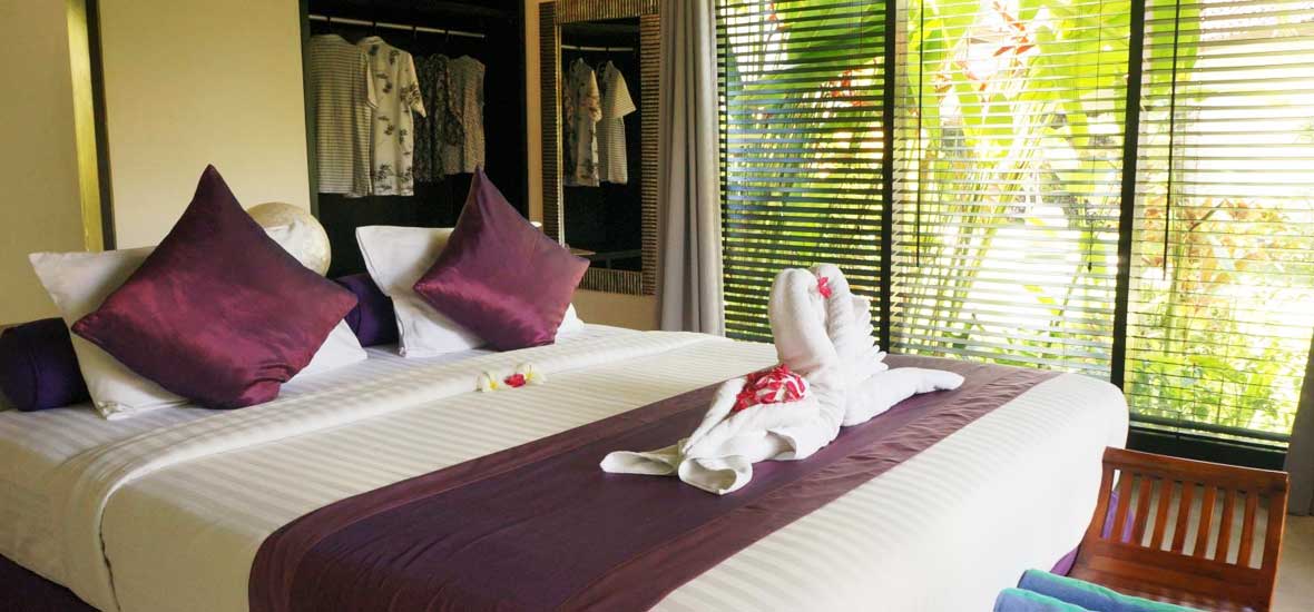 Suites with garden view. A Suites with an outdoor shared swimming pool suitable for low budged couple. Comfortable for 2 people and 1 children